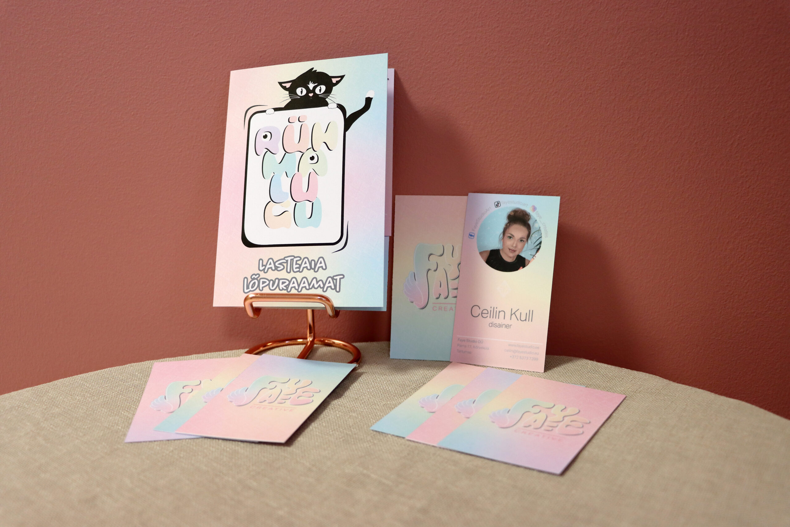 Faye Studio pakub ettevõtetele laia valikut kujundustöid ja- teenuseid alates firmagraafika loomisest kuni omatoodete pakendite kujundamiseni. Aitame luua Sinu ettevõttele isikupärase graafilise näo: kujundame logo, loome visiitkaardid ja kataloogid. Vajadusel saame kujundada pakendite kuvandid ning aidata ka kodulehe disainimisel ja veebibännerite ja- reklaamide kujundamisel. Saame pakkuda ka püsivat kujunduspartnerlusteenust olukorras, kus ettevõte vajab pidevat turundust, graafilise materjali uuendamist, uuesti loomist ja trükkimist. Kui soovid rohkem informatsiooni, võta meiega ühendust siit.